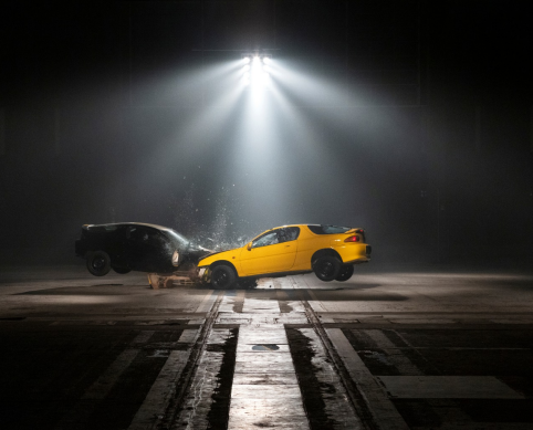 E para que essa colisão acontecesse, a artista passou por meses em treinamento com dublês profissionais estadunidenses e brasileiros, e nesses treinos, aprendeu a fazer manobras extremas com os carros, como por exemplo, derrapagens em alta velocidade e frenagens bruscas. Desse modo, essas experiências com os carros, foi determinante para que Garcia se sentisse “vestida” por ele, como na armadura, e lidando com essa máquina em sua complexidade. Foram também necessário meses de preparo fisico para conseguir suportar o impacto com menos risco. Assim, o processo poético de Garcia, foi atravessado por decisões técnicas e logísticas (como a preparação dos veículos, a dinâmica com o dublê, os protocolos de segurança), mas também, por extremas camadas emocionais. Importante observar que o trabalho de ensaio não foi apenas físico, mas também, exigiu uma preparação mental. A antecipação do impacto em CRU / RAW parece ter atravessado Garcia com estados de exaustão e uma forma intensa de presença. Segundo relatos da própria artista, durante semanas seu corpo teria sonhado com a colisão iminente, escutando, em sonho, o som metálico da batida que ainda não ocorrera. A partir disso, é possível levantar a hipótese de que a energia condensada na espera, assim composta, por tensão, preparação, projeção, possa já configurar um tempo da performance. Talvez seja possível pensar que os gestos anteriores ao impacto não sejam apenas preparatórios, mas integrem uma dimensão expandida da obra, na qual o corpo antecipa, em sonho e vigília, aquilo que só mais tarde se materializaria no real.